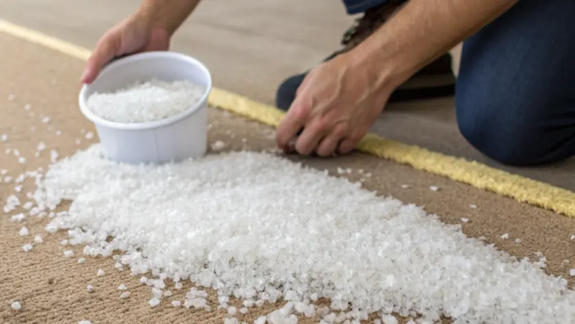 Per iniziare, spargi il sale grosso sul tappeto in modo uniforme, evitando però di esagerare: non serve creare uno strato spesso, bastano pochi millimetri per far sì che il sale lavori bene. Se preferisci, usa un colino a maglie larghe per distribuirlo senza accumuli eccessivi in un unico punto. Una volta cosparso, lascia agire il sale per almeno un’ora, idealmente due, perché durante questo tempo assorbirà buona parte dei cattivi odori. Evita di camminarci sopra mentre il sale è sparso, altrimenti finirai con sale dappertutto in casa. Trascorso il tempo, aspira con cura il sale, eliminando ogni residuo dalle fibre. Se hai un tappeto particolarmente spesso, passa l’aspirapolvere più volte per assicurarti di rimuovere tutto. Per tappeti piccoli o di dimensioni medie, puoi anche scuoterli un po’ fuori casa prima e dopo l’applicazione, così da facilitare la pulizia.