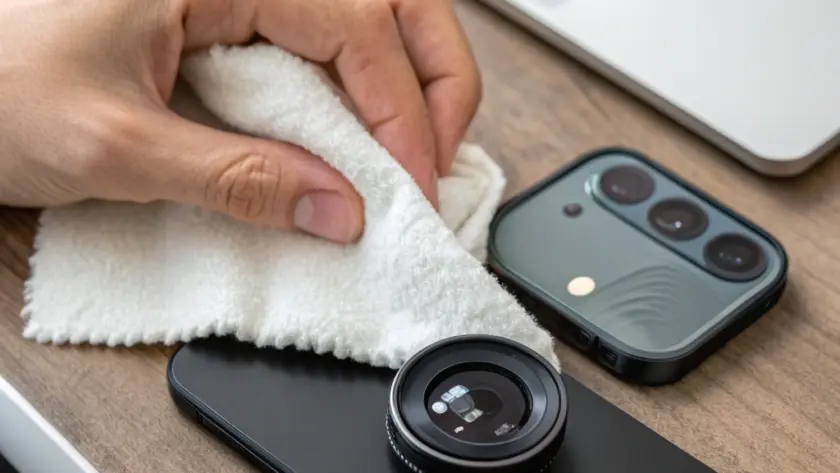 Un semplice panno in microfibra è spesso la soluzione più efficace per mantenere la lente della camera pulita e trasparente. Poco tempo, niente rischi e tanta soddisfazione nel rivedere foto nitide e senza aloni.