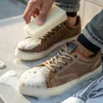 Prendi un limone fresco e tagliane una metà. Spremi leggermente il succo su una ciotolina se vuoi dosare meglio, altrimenti puoi strofinare delicatamente direttamente la metà di limone sulla scarpa. Procedi passando il limone sulla superficie, concentrandoti sulle zone più soggette a sporco o scolorimento, come la punta o i laterali. Non premere troppo per evitare di rovinare materiali delicati. Lascia agire per qualche minuto, quel tanto che basta perché il limone asciughi leggermente sulla superficie. Poi prendi un panno morbido bagnato con acqua tiepida e passa delicatamente sulla scarpa per rimuovere l’eccesso di succo. Infine asciuga con un altro panno pulito e lascia le scarpe all’aria, evitando fonti di calore diretto. Questo semplice gesto aiuta a creare una leggera barriera protettiva e migliora l’odore, soprattutto in caso di umidità o sudore.