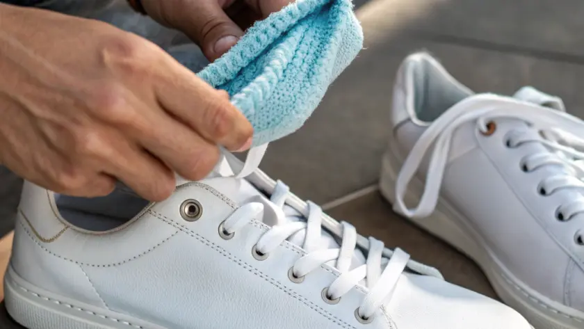 - Per le scarpe bianche, spesso basta solo il panno umido per togliere la polvere e piccole macchie superficiali.