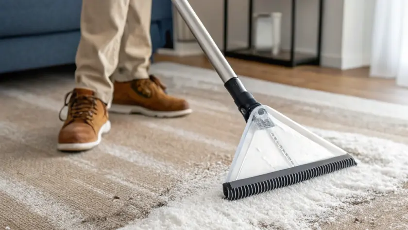 4. Aspira con l’aspirapolvere, assicurandoti di raccogliere tutto il bicarbonato. Se serve, ripassa una seconda volta per eliminare residui.