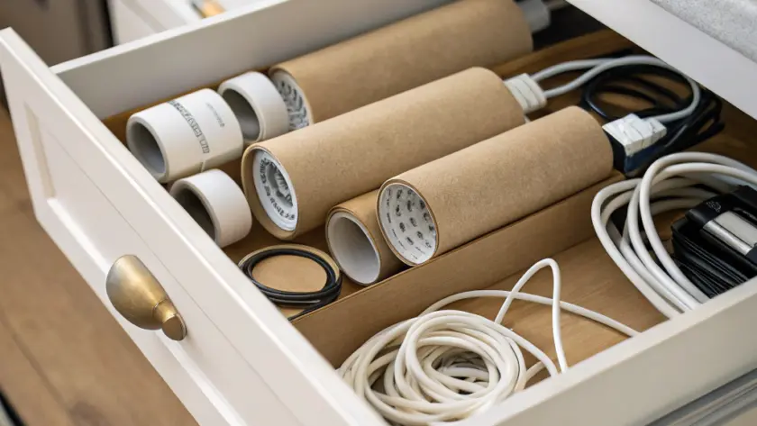 Organizzare i cavi con i rotoli di carta è un metodo semplice e a portata di mano che riduce il caos nei cassetti. È un piccolo accorgimento che aiuta davvero a risparmiare tempo e fatica ogni giorno.