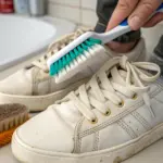 - Se la scarpa è di tessuto o sintetico, evita la crema e usa solo acqua tiepida per non macchiarla.